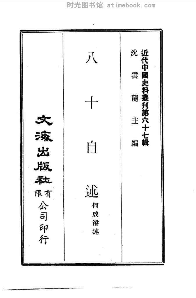 | 网盘路径:/时光图书馆珍藏系列/书籍文件/老图书/《八十自述》电子版合集.db | ||