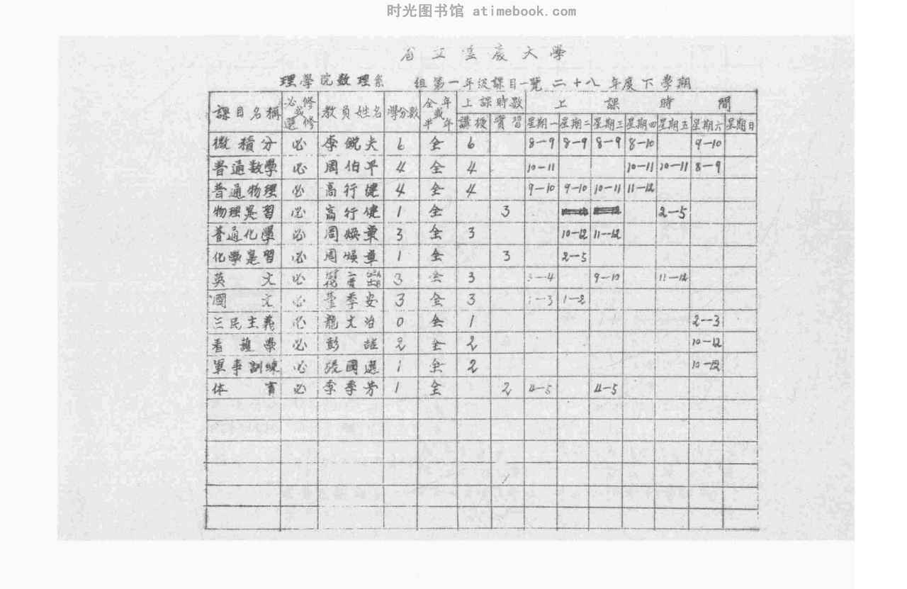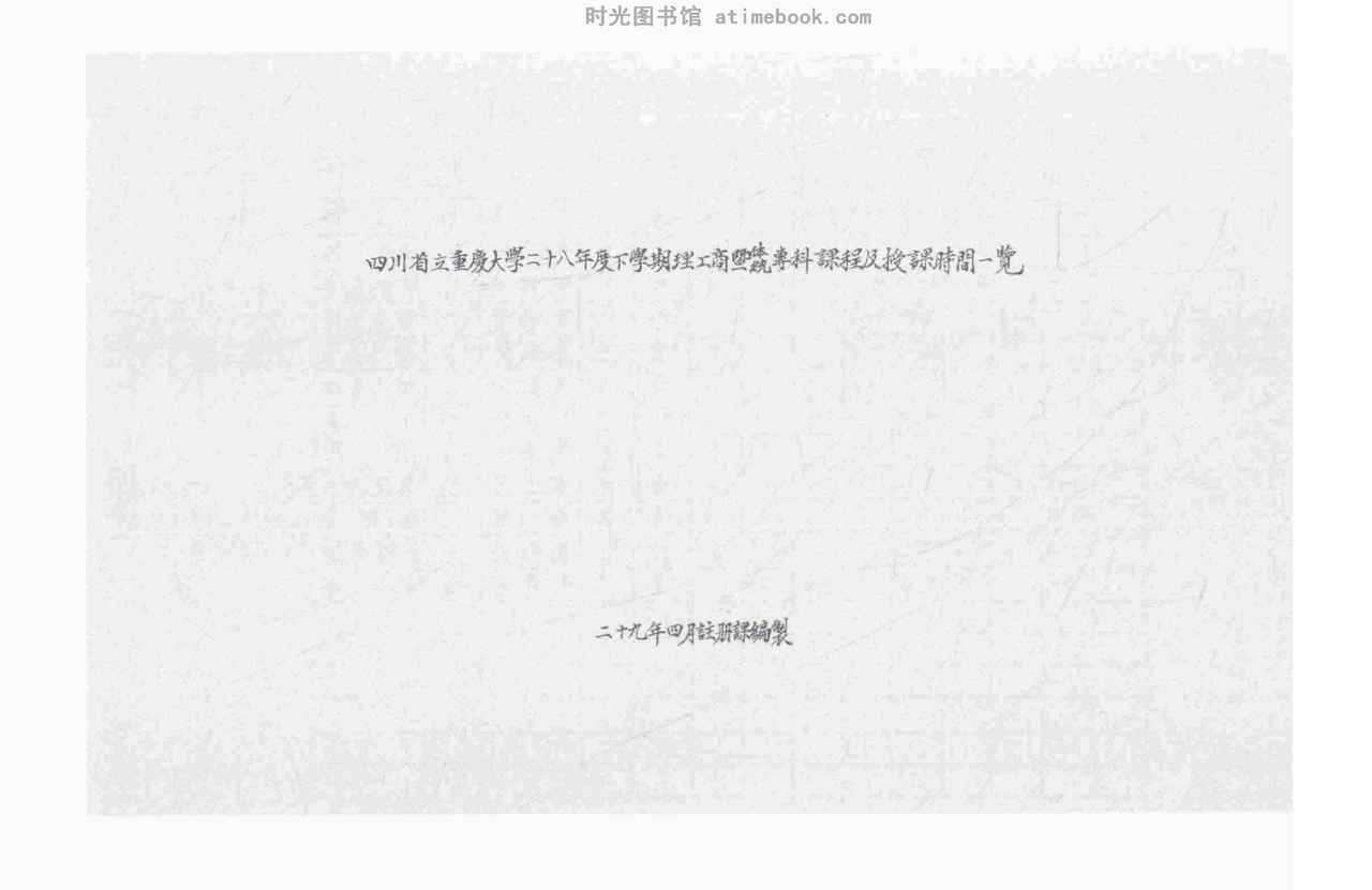网盘路径:/时光图书馆珍藏系列/书籍文件/老图书/《四川省重庆大学28年度下学期理工商暨体统专科课程及授课时间一览》电子版合集.db