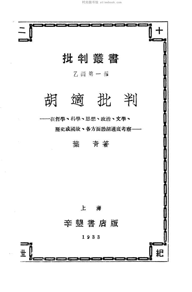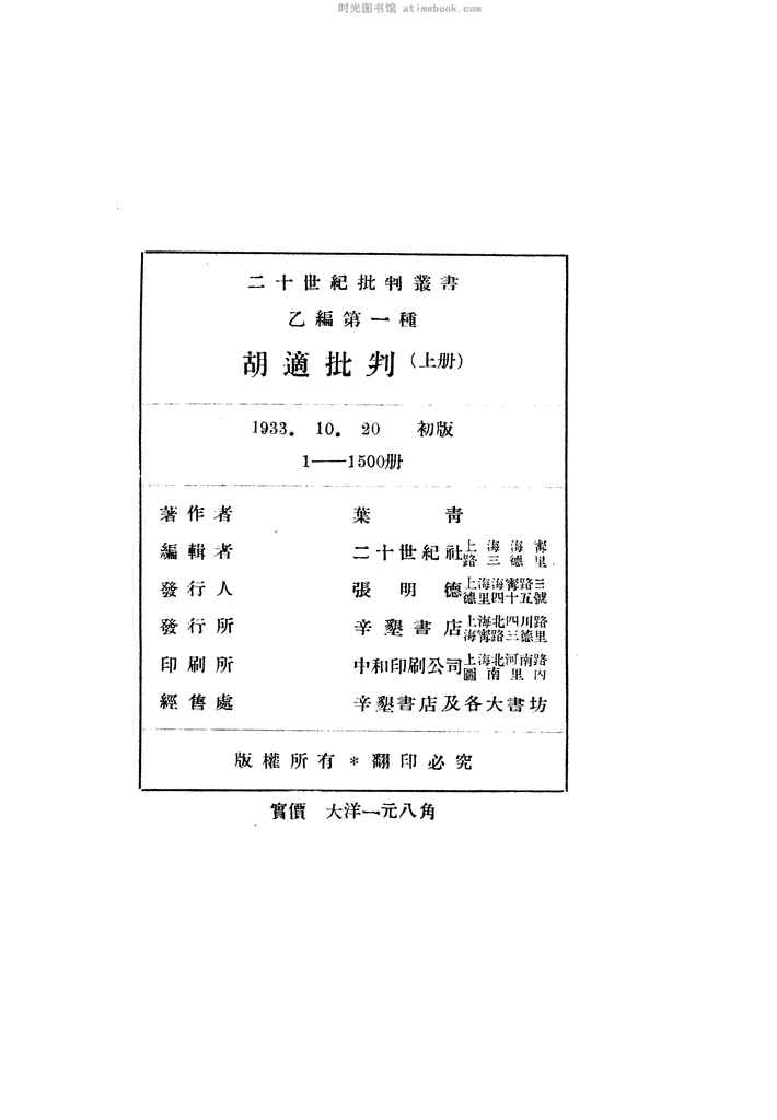| 网盘路径:/时光图书馆珍藏系列/书籍文件/老图书/《胡适批判》电子版合集.db | ||
