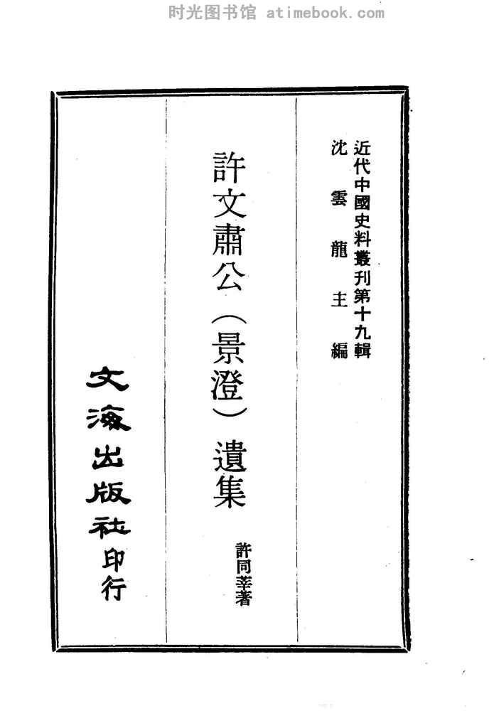 | 网盘路径:/时光图书馆珍藏系列/书籍文件/老图书/《许文肃公(景澄)遗集》电子版合集.db | ||