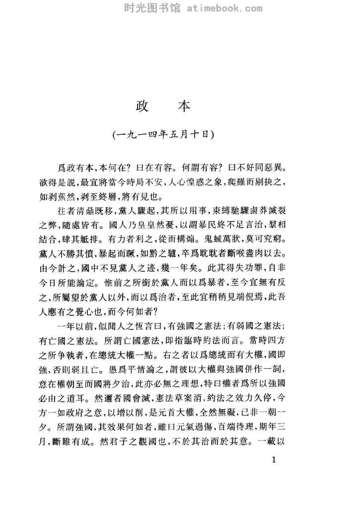 28-论政本——答李北村君(1914-6-10)