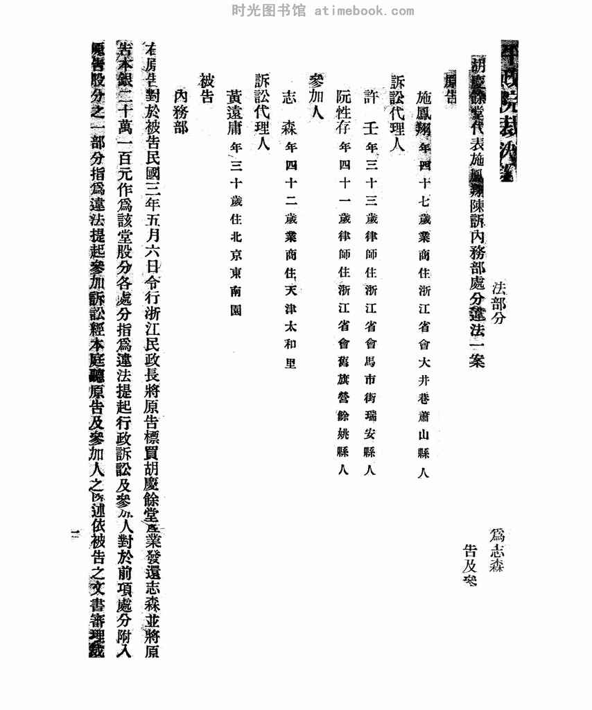 | 网盘路径:/时光图书馆珍藏系列/书籍文件/老图书/《平政院裁决录》电子版合集.db | ||