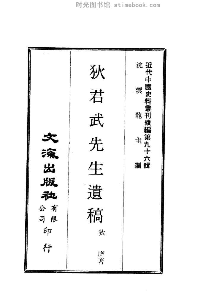 | 网盘路径:/时光图书馆珍藏系列/书籍文件/老图书/《狄君武先生遗稿》电子版合集.db | ||