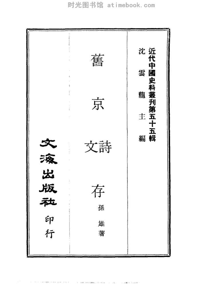 | 网盘路径:/时光图书馆珍藏系列/书籍文件/老图书/《旧京诗文存(一)》电子版合集.db | ||