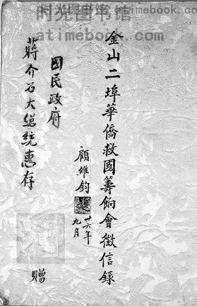 | 网盘路径:/时光图书馆珍藏系列/书籍文件/老图书/《金山二埠华侨救国筹饷会征信录》电子版合集.db | ||