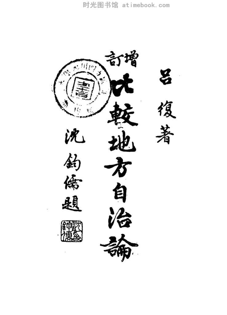 网盘路径:/时光图书馆珍藏系列/书籍文件/老图书/《增订比较地方自治论》电子版合集.db