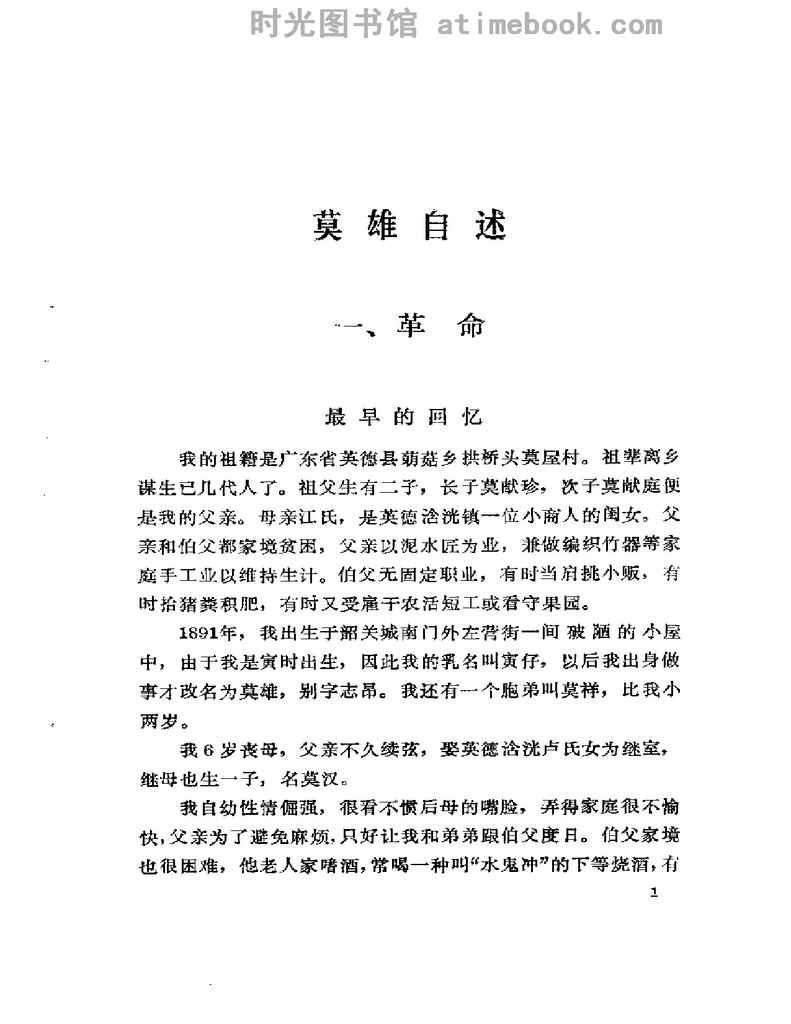 | 网盘路径:/时光图书馆珍藏系列/书籍文件/老图书/《广东文史丛书_莫雄回忆录》电子版合集.db | ||