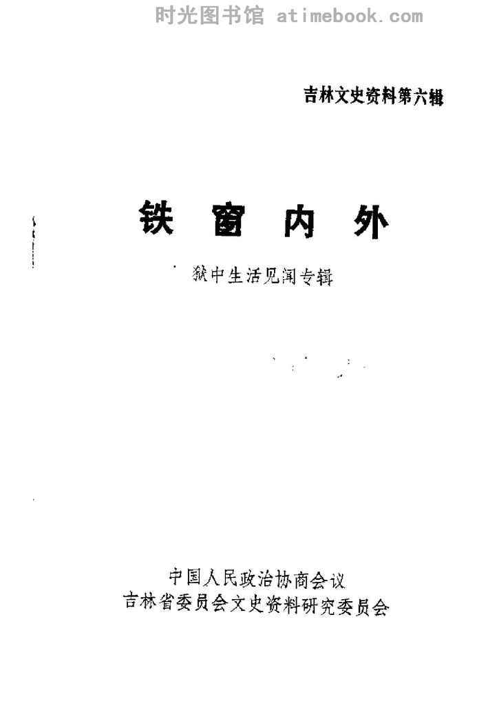 | 网盘路径:/时光图书馆珍藏系列/书籍文件/老图书/《吉林文史资料_第6辑_铁窗内外》电子版合集.db | ||