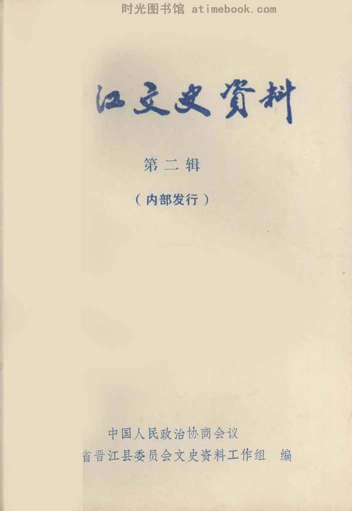 | 网盘路径:/时光图书馆珍藏系列/书籍文件/老图书/《晋江文史资料_第2辑》电子版合集.db | ||