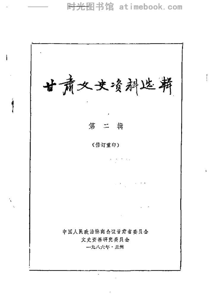 | 网盘路径:/时光图书馆珍藏系列/书籍文件/老图书/《甘肃文史资料选辑_第2辑》电子版合集.db | ||