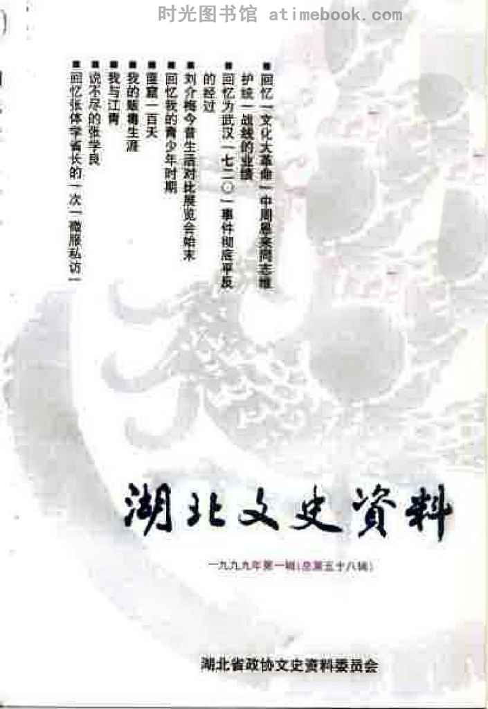| 网盘路径:/时光图书馆珍藏系列/书籍文件/老图书/《湖北文史资料_1999年第1辑_总第58辑》电子版合集.db | ||