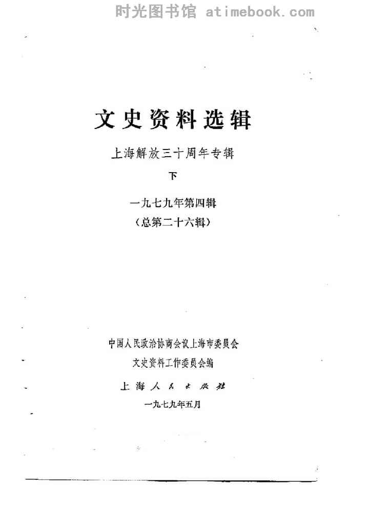 文件下载 | 名称:《上海文史资料选辑_第26辑_上海解放30周年专辑_下册》电子版合集 | |
