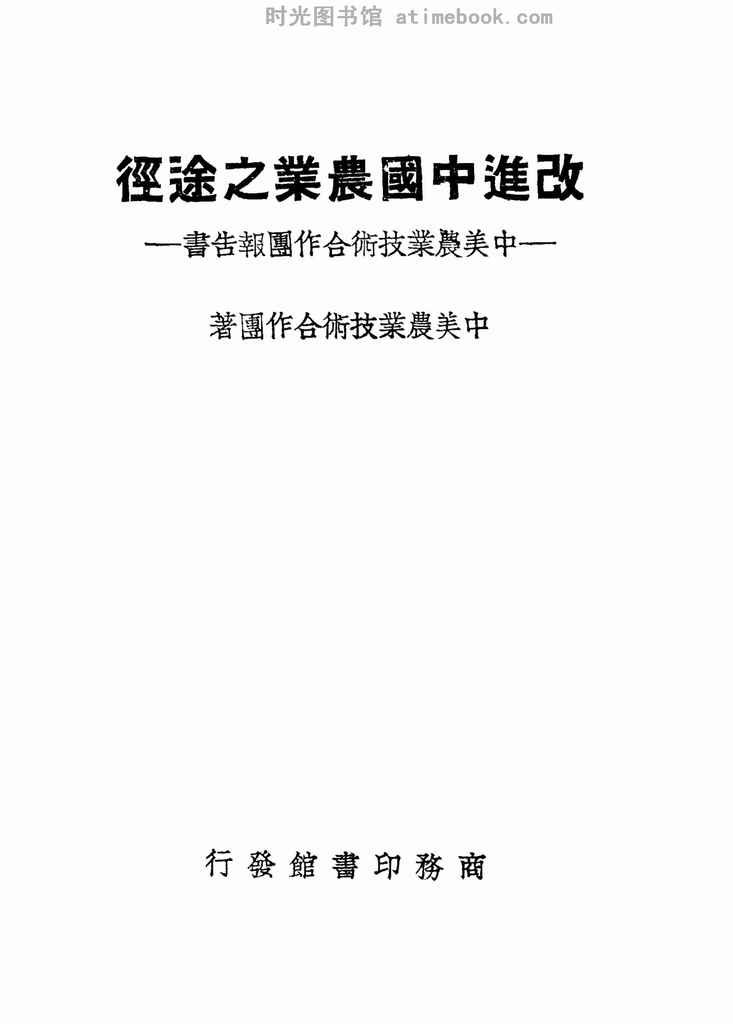 网盘路径:/时光图书馆珍藏系列/书籍文件/老图书/《改进中国农业之途径:中美农业技术合作团报告书》电子版合集.db