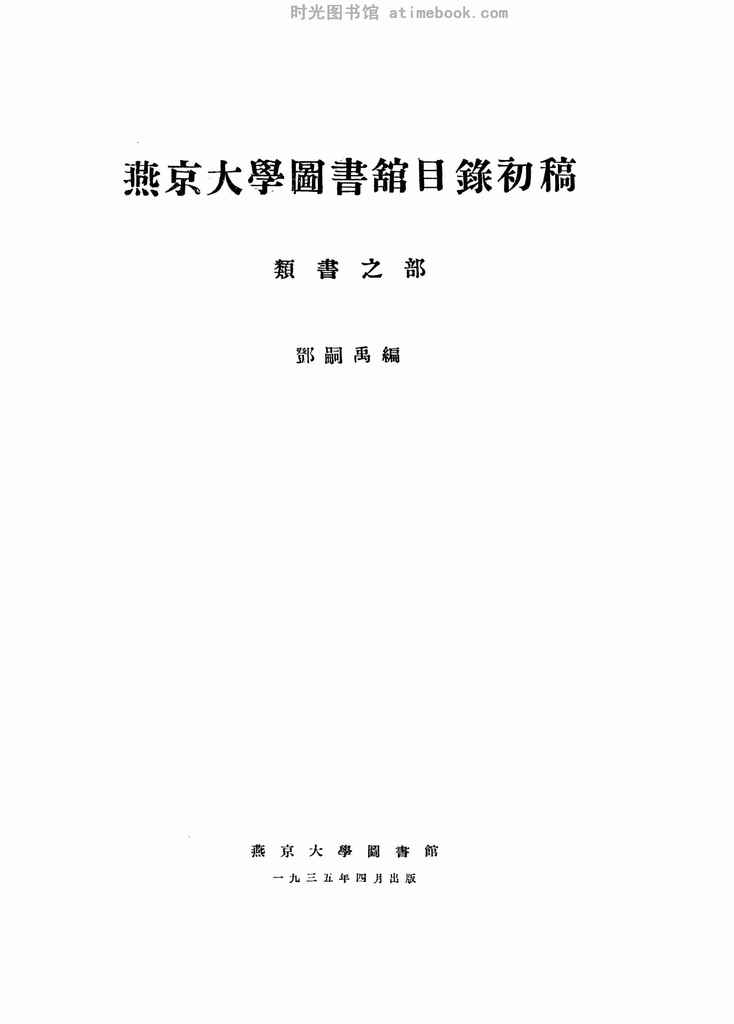 | 网盘路径:/时光图书馆珍藏系列/书籍文件/老图书/《燕京大学图书馆目录初稿》电子版合集.db | ||