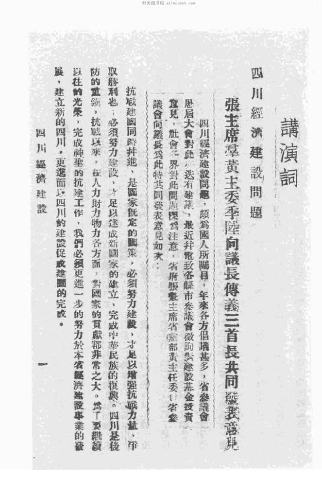 5-黄主任委员对四川省临时参议会第二届第二次大会演词说明四川经济建设之重要