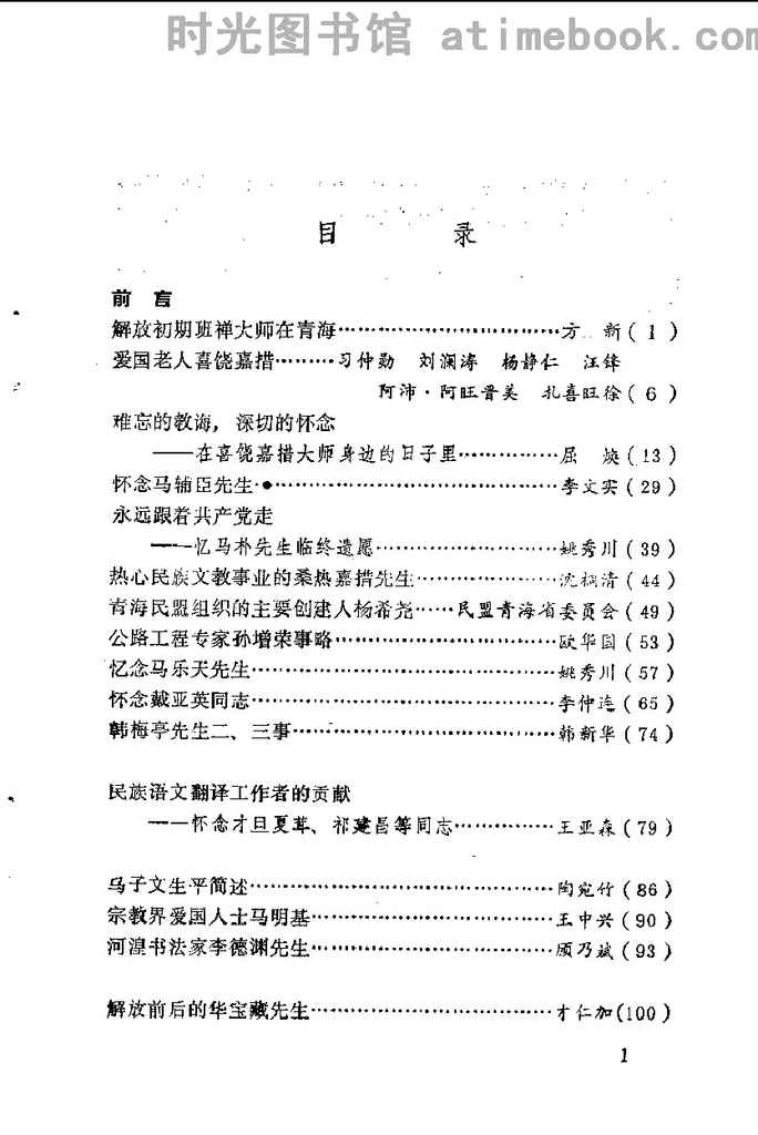 | 网盘路径:/时光图书馆珍藏系列/书籍文件/老图书/《缅怀集_纪念青海解放四十周年人物史料专辑》电子版合集.db | ||