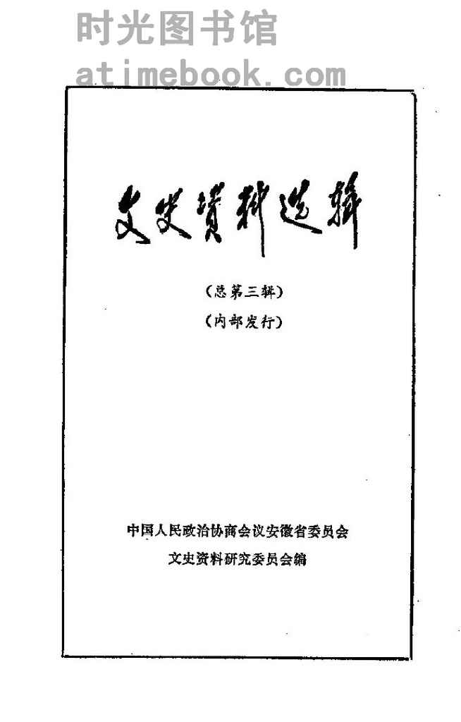 | 网盘路径:/时光图书馆珍藏系列/书籍文件/老图书/《安徽文史资料选辑_总第3辑》电子版合集.db | ||