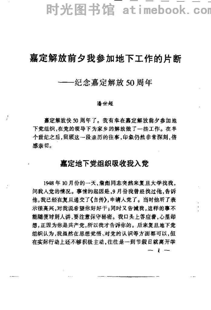 | 网盘路径:/时光图书馆珍藏系列/书籍文件/老图书/《嘉定文史_第15辑_热烈庆祝祖国50华诞嘉定解放50周年专辑》电子版合集.db | ||