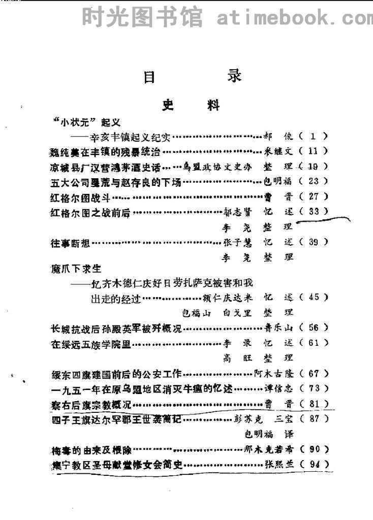 | 网盘路径:/时光图书馆珍藏系列/书籍文件/老图书/《乌兰察布盟文史资料_第1辑》电子版合集.db | ||