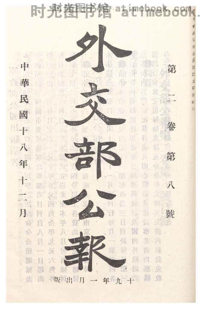 | 网盘路径:/时光图书馆珍藏系列/书籍文件/老图书/《外交部公报_第二卷第八号》电子版合集.db | ||