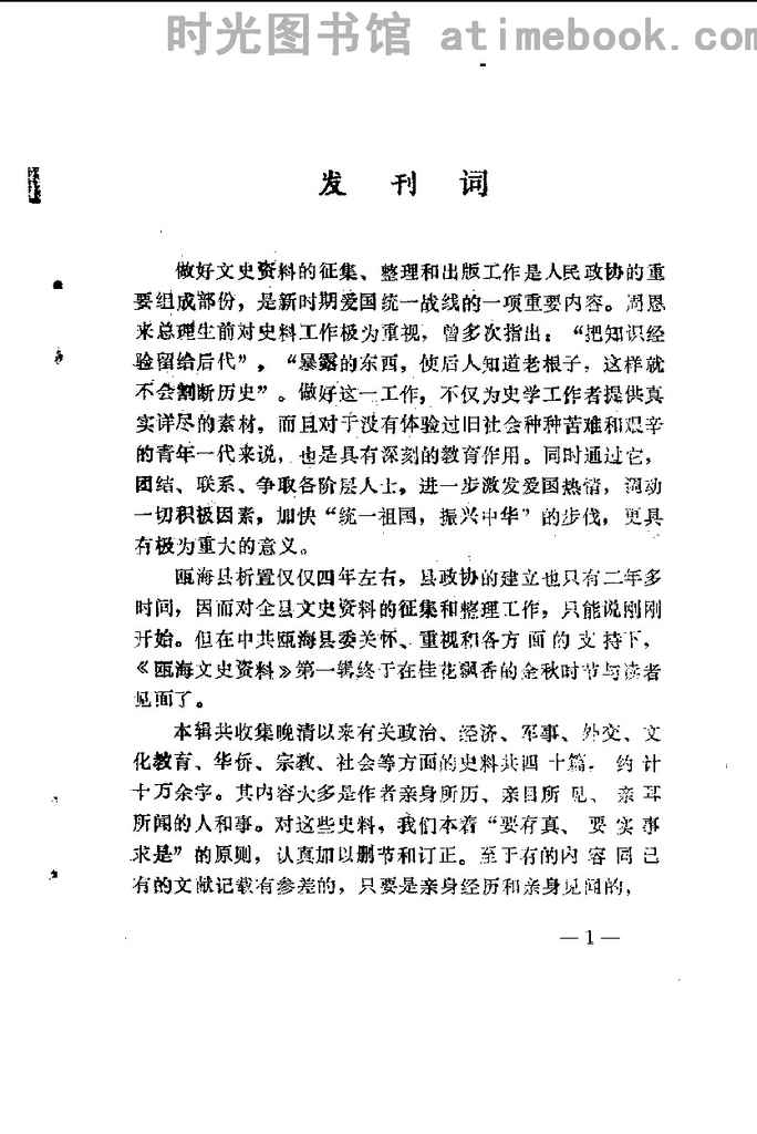 | 网盘路径:/时光图书馆珍藏系列/书籍文件/老图书/《瓯海文史资料_第1辑》电子版合集.db | ||