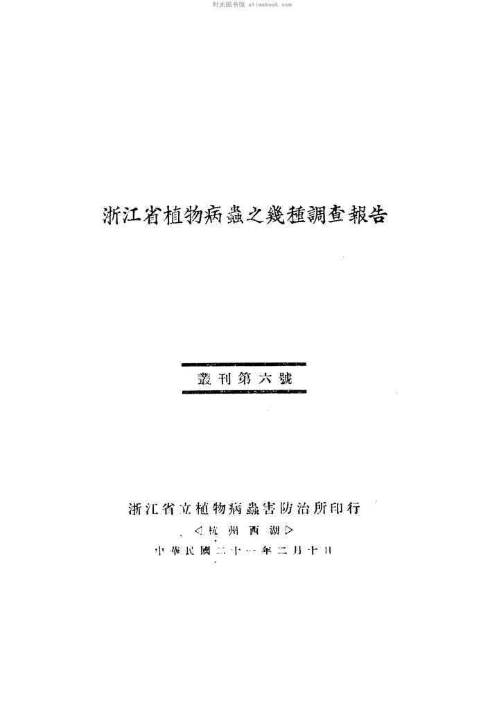 | 网盘路径:/时光图书馆珍藏系列/书籍文件/老图书/《浙江省植物病虫之几种调查报告》电子版合集.db | ||