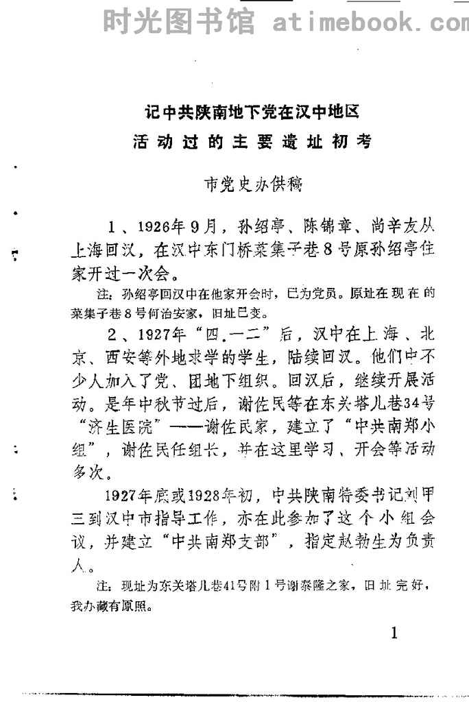 2-记*陕南地下*在汉中地区活动过的主要遗址初考_市*史办供稿
