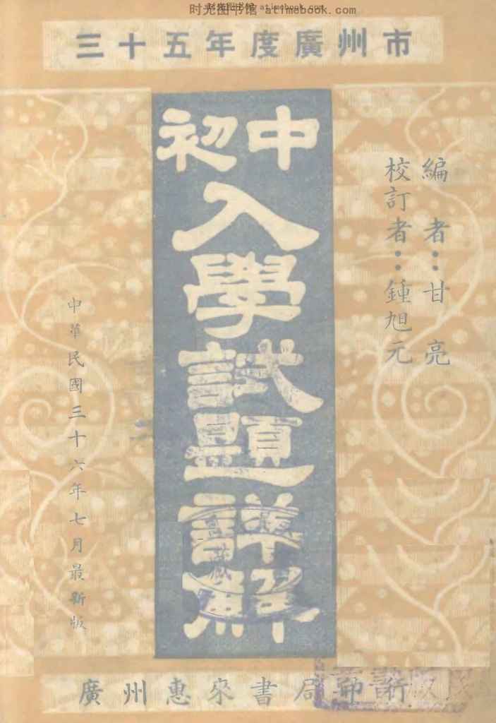 网盘路径:/时光图书馆珍藏系列/书籍文件/老图书/《广州全市初中入学试题详解》电子版合集.db