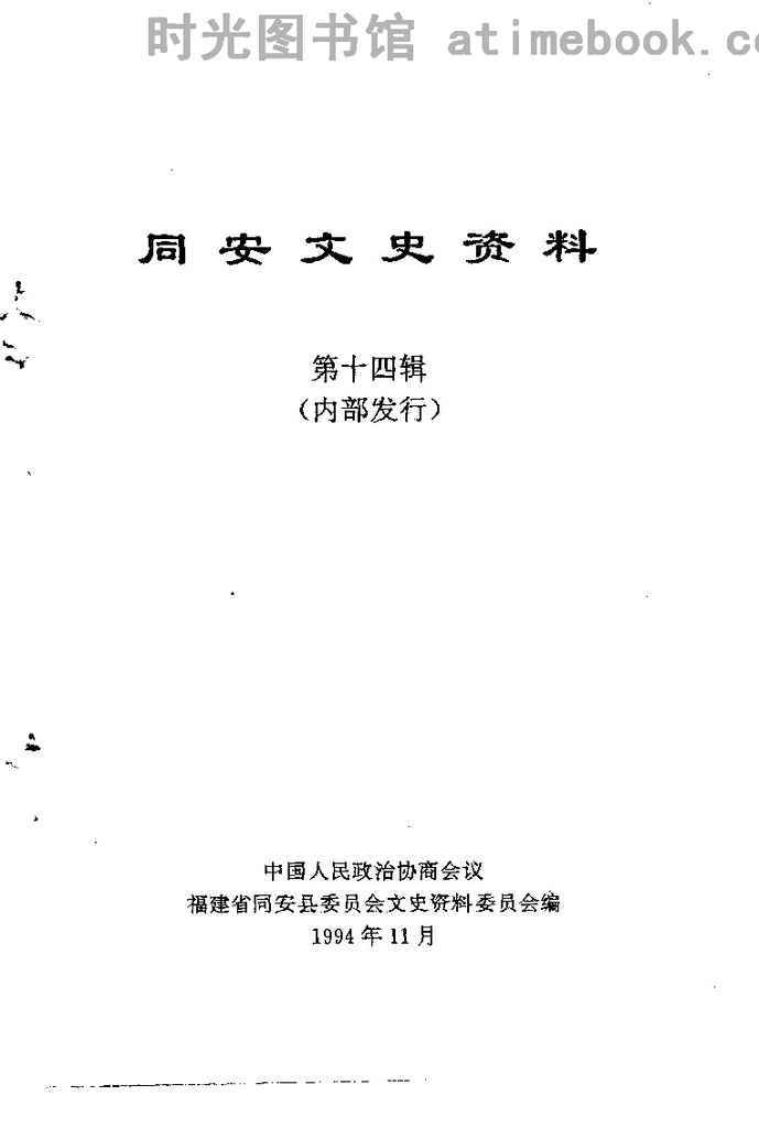 | 网盘路径:/时光图书馆珍藏系列/书籍文件/老图书/《同安文史资料_第14辑》电子版合集.db | ||