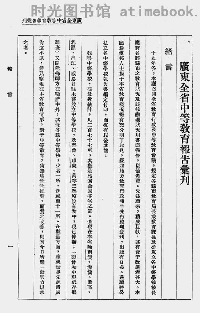 老图书–《广东全省中等教育报告汇刊(中华民国十九年)(一)》电子版合集