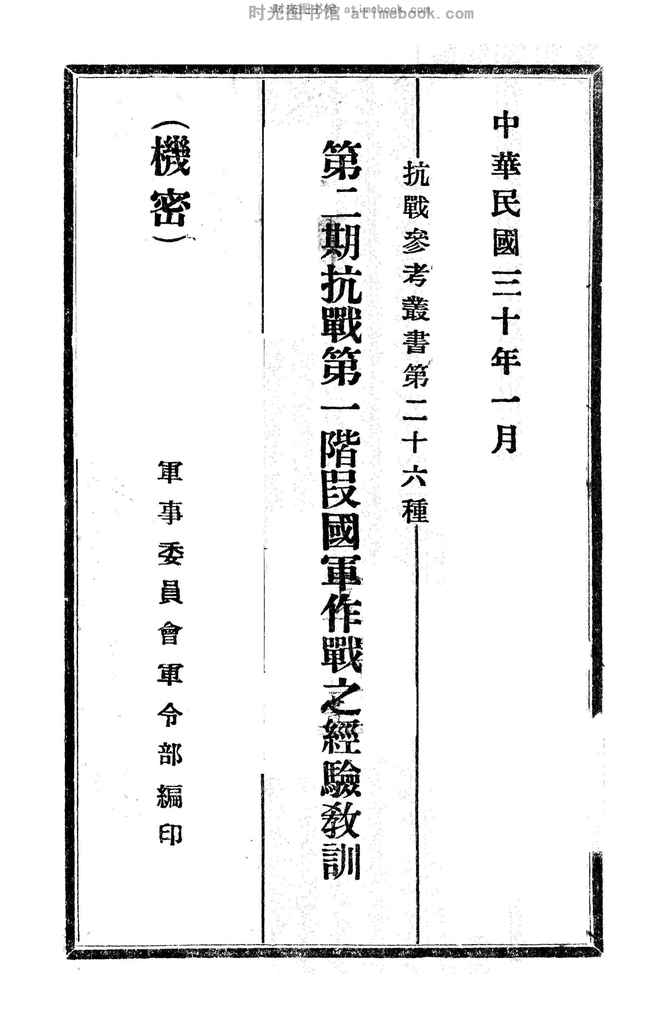 | 网盘路径:/时光图书馆珍藏系列/书籍文件/老图书/《第二期抗战第一阶段国军作战之经验教训》电子版合集.db | ||