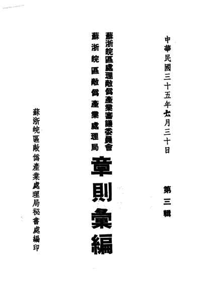 | 关键词:苏浙皖区,敌伪,产业章则, | ||