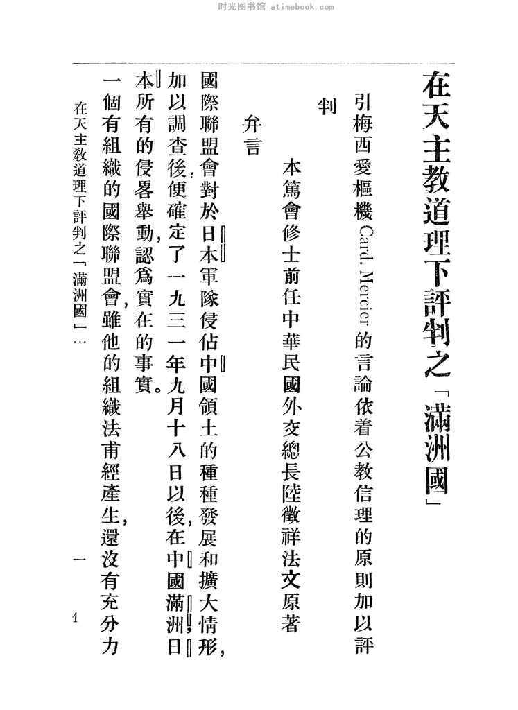 | 网盘路径:/时光图书馆珍藏系列/书籍文件/老图书/《在天主教道理下评判之满洲国》电子版合集.db | ||