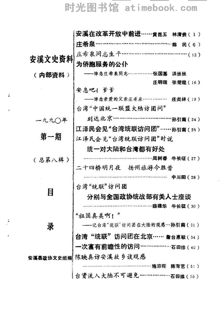 | 网盘路径:/时光图书馆珍藏系列/书籍文件/老图书/《安溪文史资料_1990年第1辑_总第8辑》电子版合集.db | ||