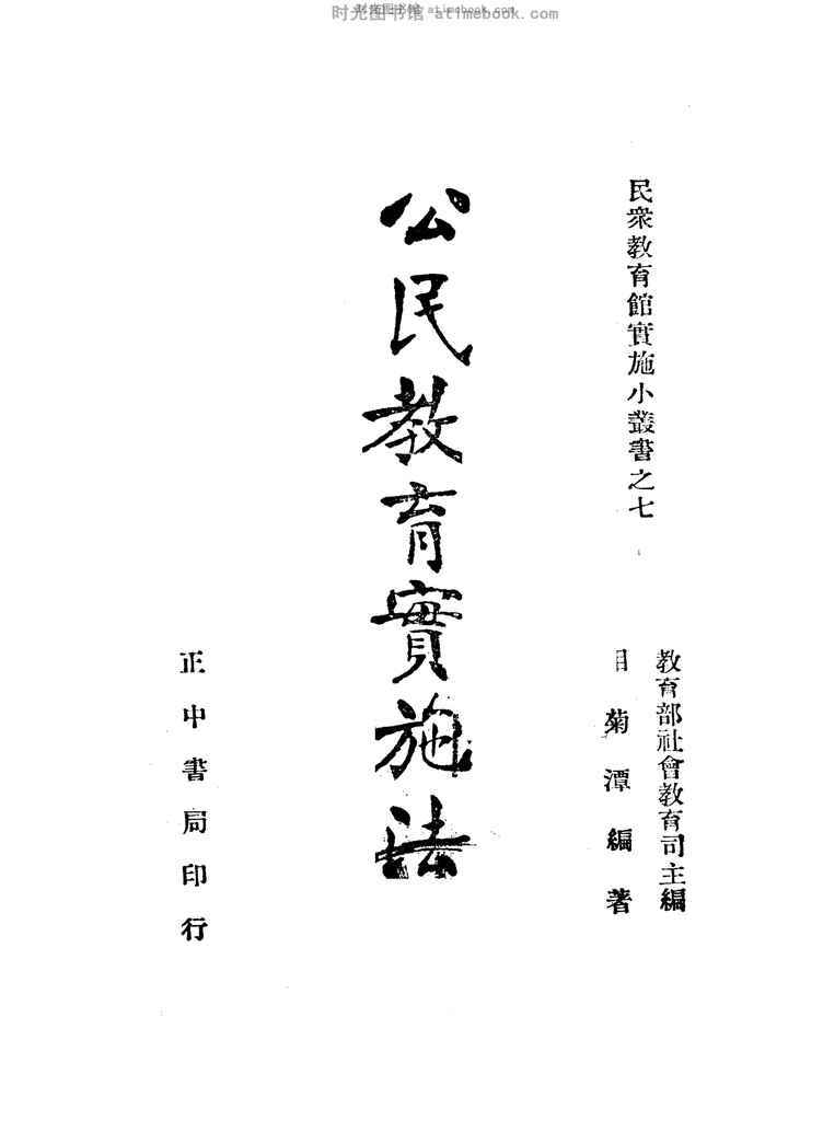 | 网盘路径:/时光图书馆珍藏系列/书籍文件/老图书/《公民教育实施法》电子版合集.db | ||