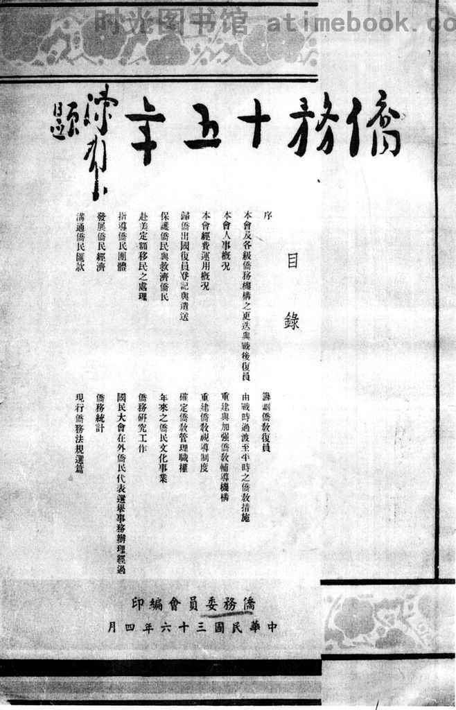| 网盘路径:/时光图书馆珍藏系列/书籍文件/老图书/《侨务十五年》电子版合集.db | ||