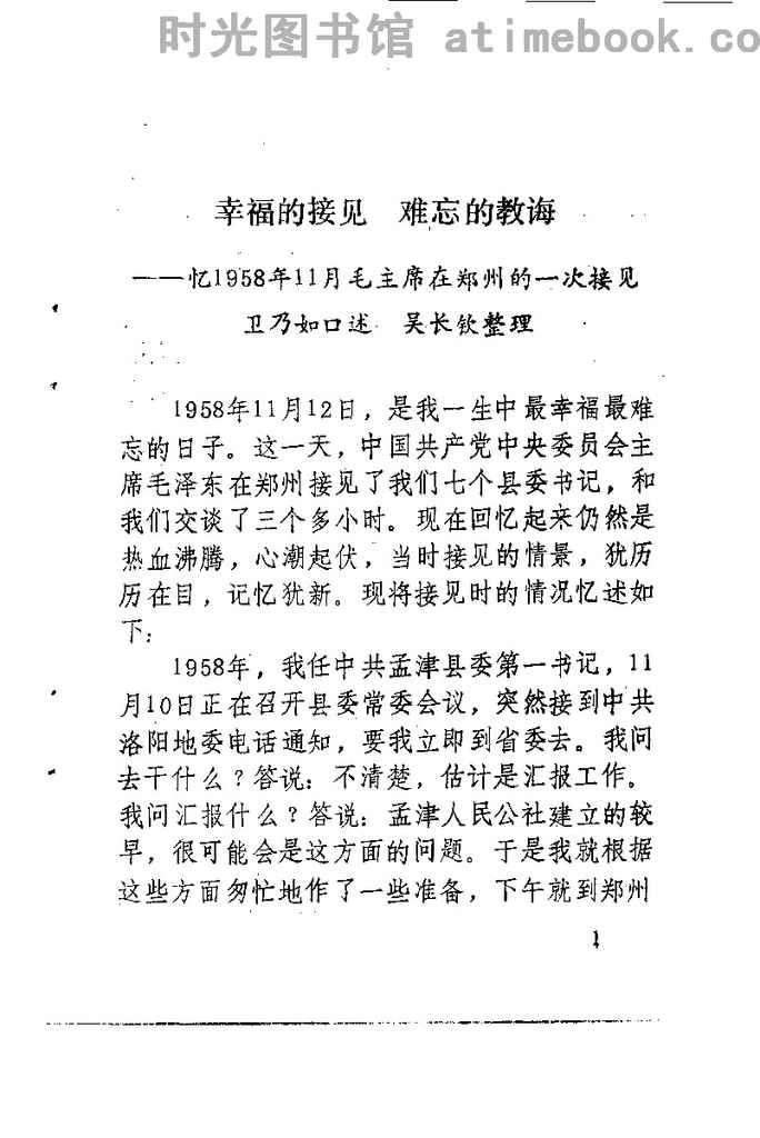 2-幸福的接见_难忘的教诲——忆1958年11月毛主席在郑州的一次接见_卫乃如口述_吴长钦整理