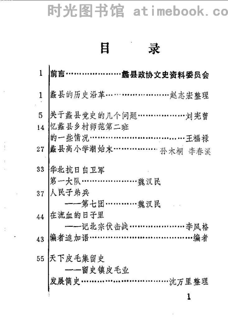 | 网盘路径:/时光图书馆珍藏系列/书籍文件/老图书/《蠡县文史资料选辑_第1辑》电子版合集.db | ||