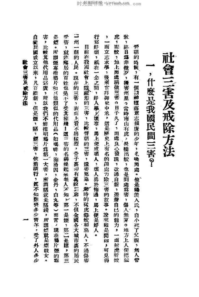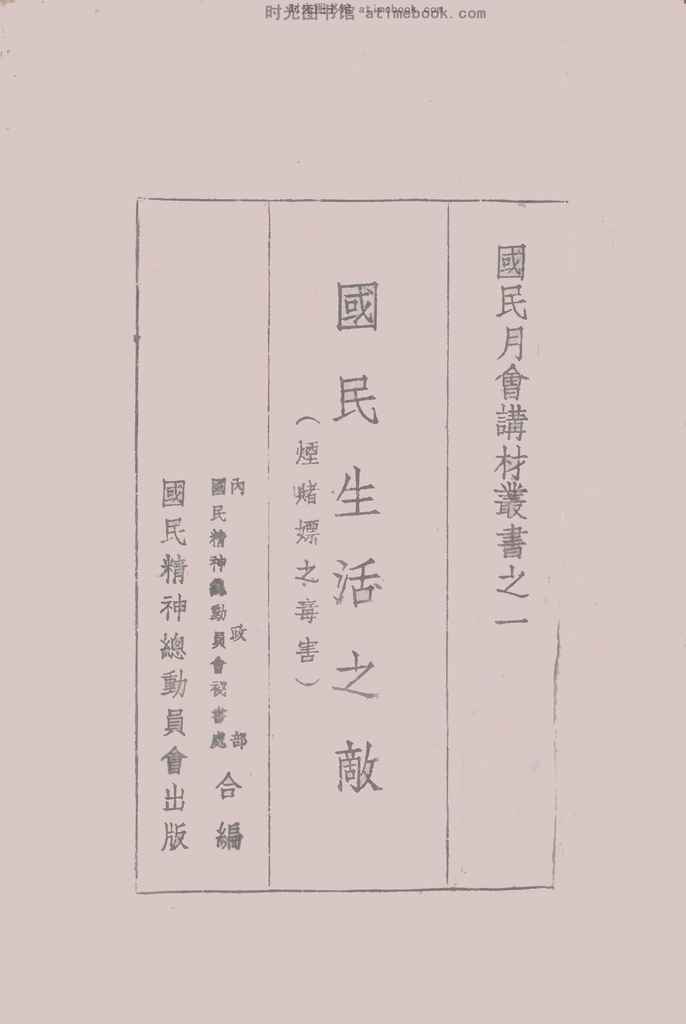 | 网盘路径:/时光图书馆珍藏系列/书籍文件/老图书/《国民生活之敌_烟赌嫖之毒害》电子版合集.db | ||