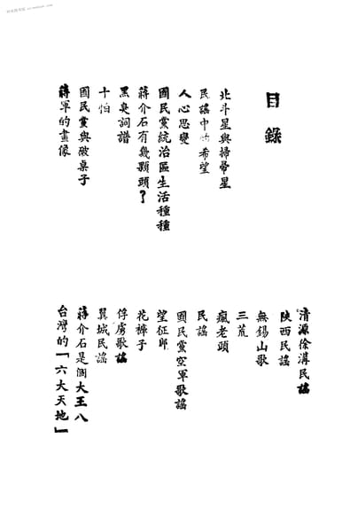 | 网盘路径:/时光图书馆珍藏系列/书籍文件/老图书/《蒋管区民谣集》电子版合集.db | ||