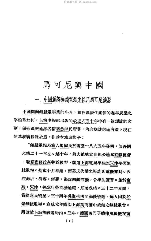 | 网盘路径:/时光图书馆珍藏系列/书籍文件/老图书/《马可尼与中国》电子版合集.db | ||
