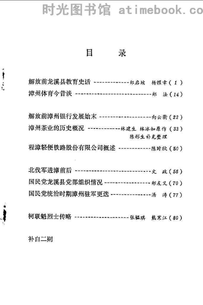 | 网盘路径:/时光图书馆珍藏系列/书籍文件/老图书/《福建省漳州市文史资料选辑_第5辑_总第10辑》电子版合集.db | ||