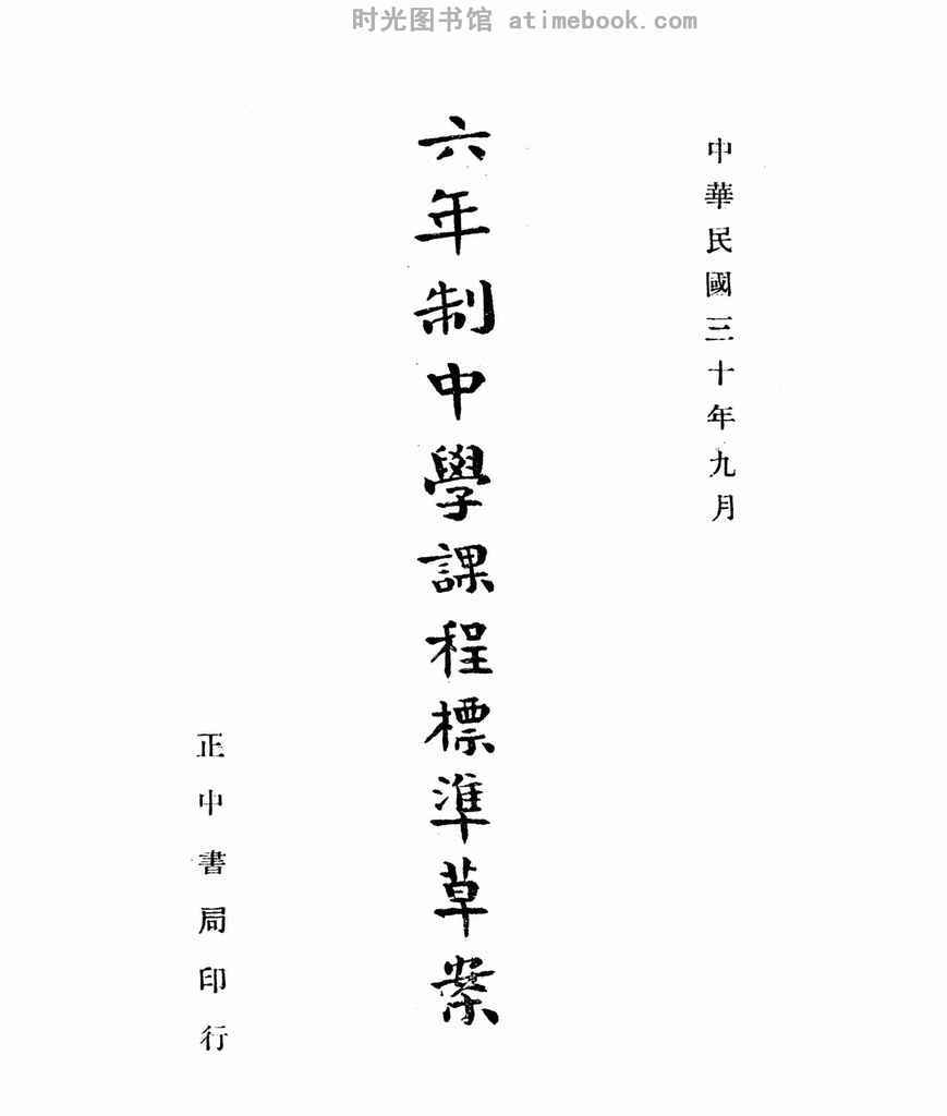 网盘路径:/时光图书馆珍藏系列/书籍文件/老图书/《六年制中学课程标准草案》电子版合集.db