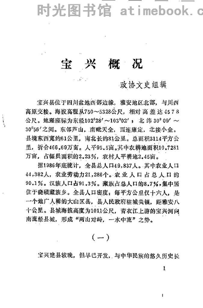 | 网盘路径:/时光图书馆珍藏系列/书籍文件/老图书/《宝兴文史资料_第1辑》电子版合集.db | ||