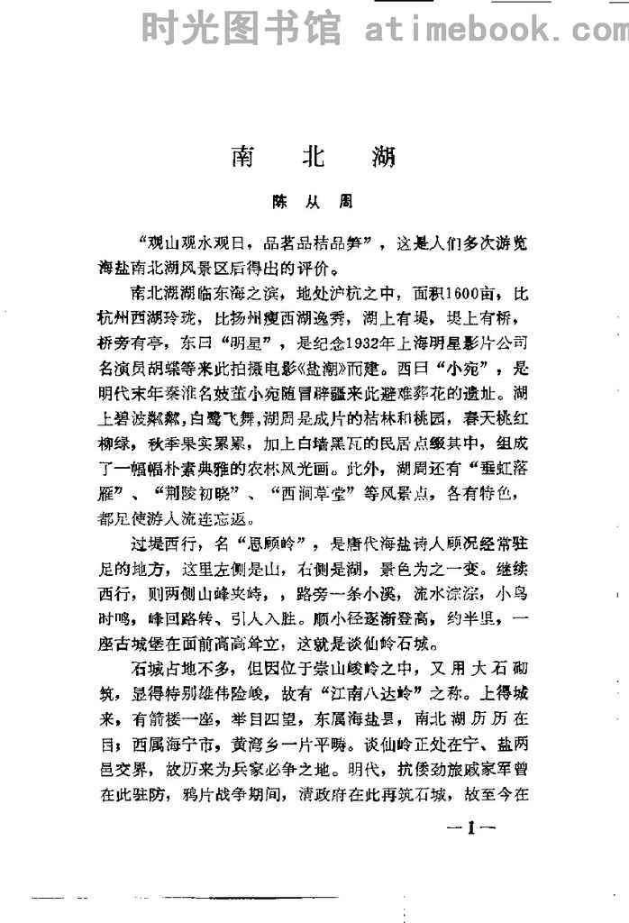 | 网盘路径:/时光图书馆珍藏系列/书籍文件/老图书/《南北湖风景专辑》电子版合集.db | ||