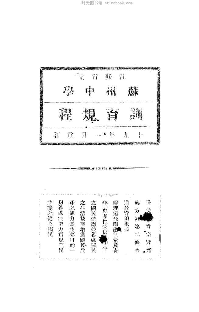 | 网盘路径:/时光图书馆珍藏系列/书籍文件/老图书/《江苏省立苏州中学训育规程》电子版合集.db | ||