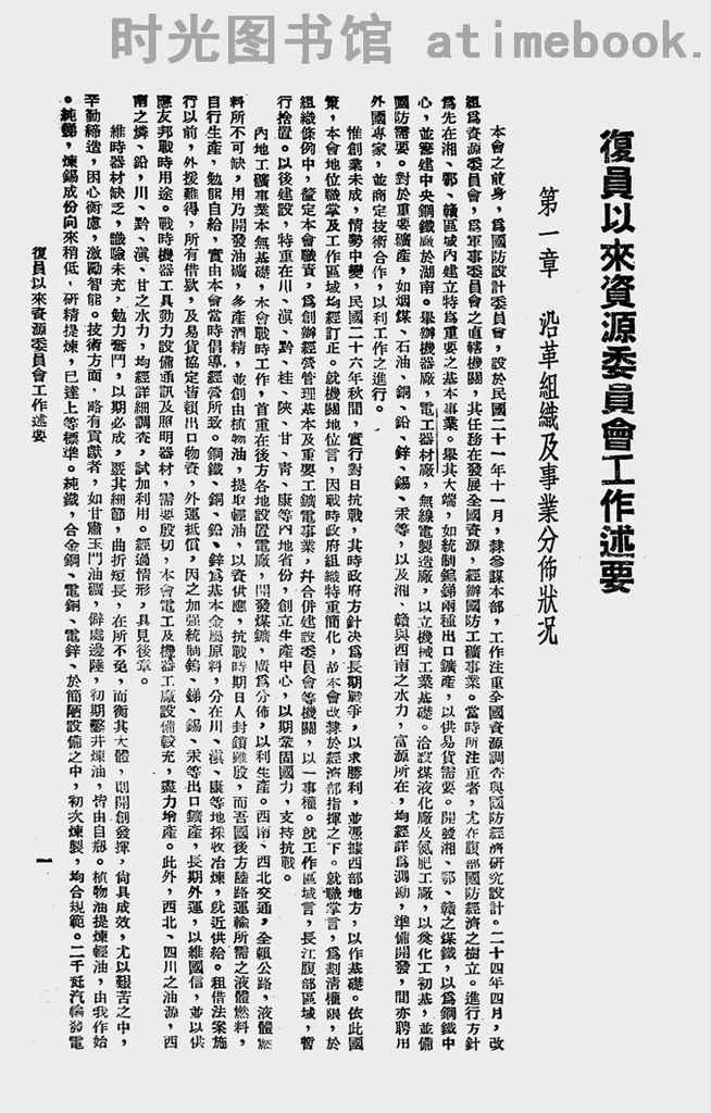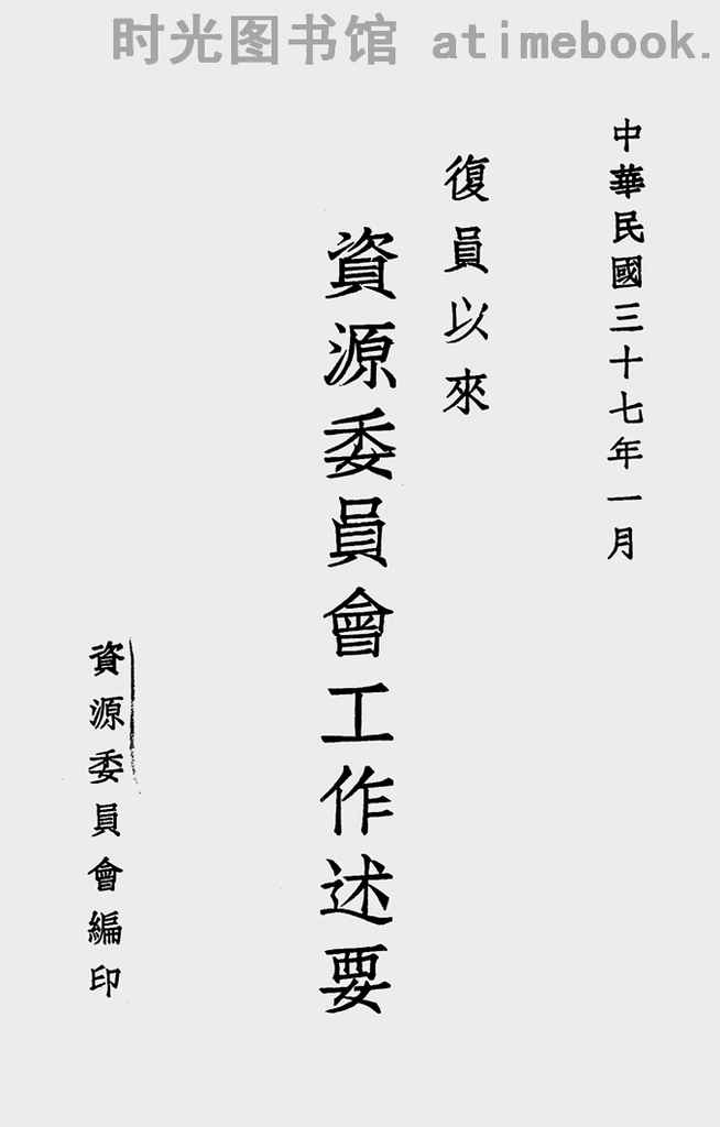 网盘路径:/时光图书馆珍藏系列/书籍文件/老图书/《复员以来资源委员会工作述要(中华民国三十七年一月)》电子版合集.db