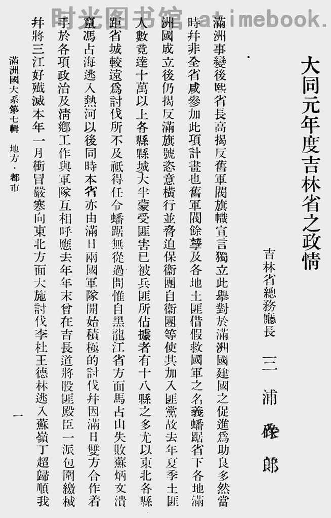 2-一、大同元年度吉林省之政情