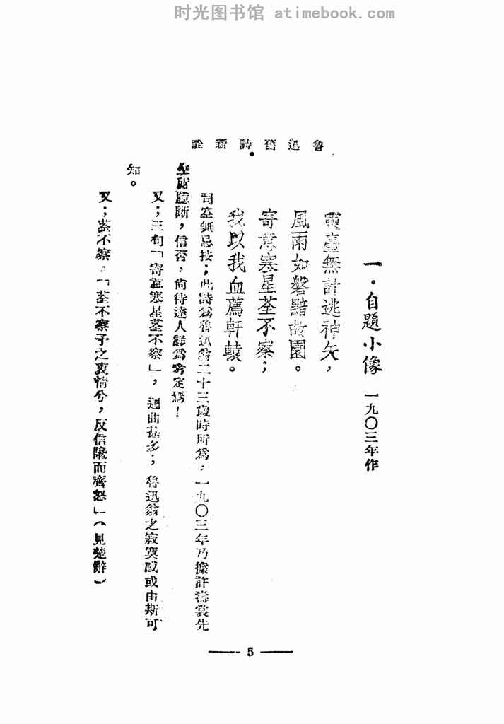 | 网盘路径:/时光图书馆珍藏系列/书籍文件/老图书/《鲁迅旧诗新诠》电子版合集.db | ||
