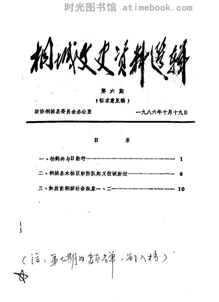 | 网盘路径:/时光图书馆珍藏系列/书籍文件/老图书/《桐城文史资料选辑_第6期》电子版合集.db | ||